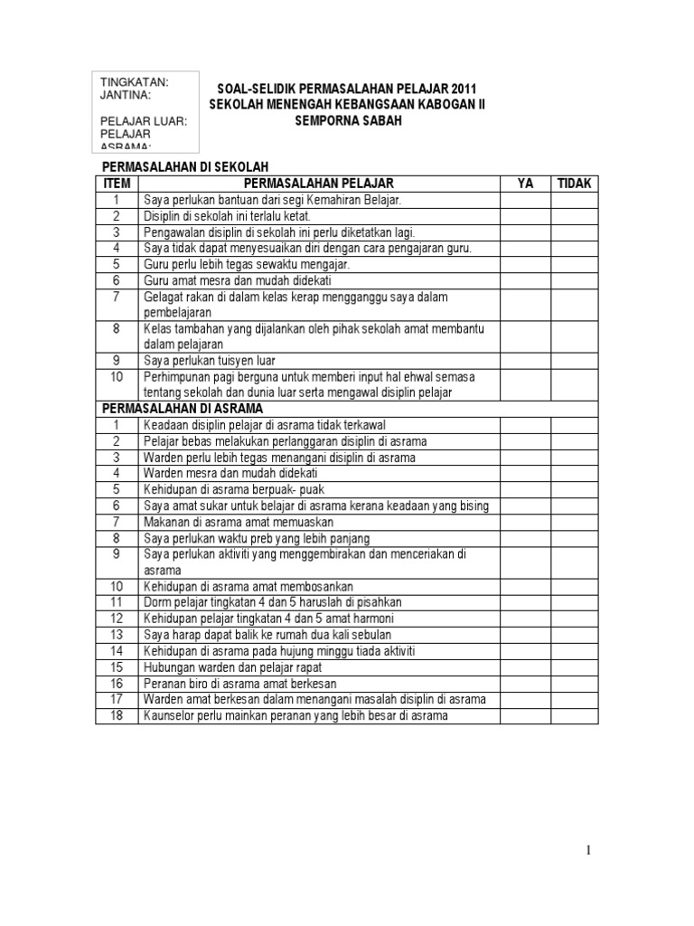 Soal Selidik Masalah Pelajar Pdf